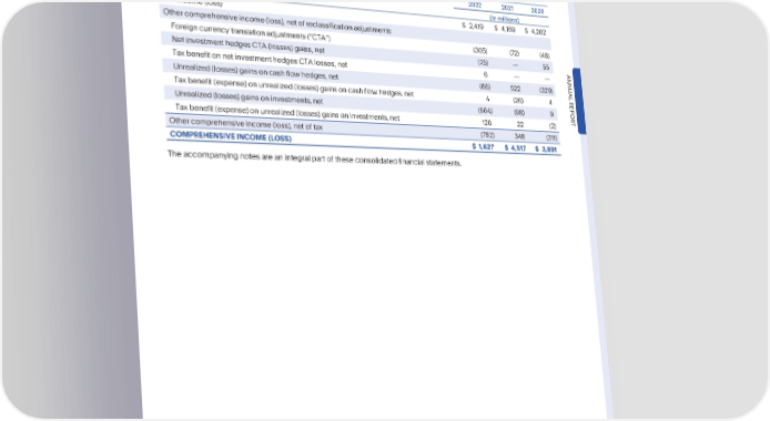 PARTIV ConsolidatedStatementsofComprehensiveIncome(Loss) PayPalHoldings,Inc. ConsolidatedStatementsofComprehensiveIncome(Loss) YearEndedDecember31, 2022 2021 2020 (In millions) Netincome(loss) $ 2,419 $ 4,169 $ 4,202 Othercomprehensiveincome(loss),netofreclassificationadjustments: Foreigncurrencytranslationadjustments(“CTA”) (305) (72) (48) NetinvestmenthedgesCTA(losses)gains,net (25) — 55 TaxbenefitonnetinvestmenthedgesCTAlosses,net 6 — — ANNU Unrealized(losses)gainsoncashflowhedges,net (88) 522 (329) AL Taxbenefit(expense)onunrealized(losses)gainsoncashflowhedges,net 4 (26) 4 REPOR Unrealized(losses)gainsoninvestments,net (504) (98) 9 Taxbenefit(expense)onunrealized(losses)gainsoninvestments,net 120 22 (2) T Othercomprehensiveincome(loss),netoftax (792) 348 (311) COMPREHENSIVEINCOME(LOSS) $ 1,627 $ 4,517 $ 3,891 Theaccompanyingnotesareanintegralpartoftheseconsolidatedfinancialstatements. •2022AnnualReport 59