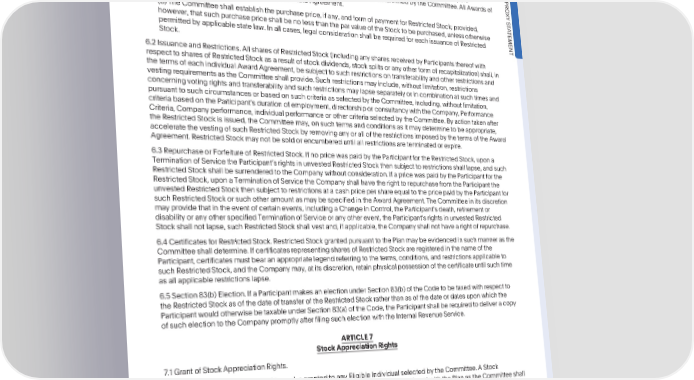 PAYPALHOLDINGS,INC.2015EQUITYINCENTIVEAWARDPLAN(MARKED) ARTICLE6 RestrictedStockAwards 6.1 Grant of Restricted Stock. (a) The CommitteeisauthorizedtomakeAwardsofRestrictedStocktoanyEligibleIndividualselectedbythe PRO CommitteeinsuchamountsandsubjecttosuchtermsandconditionsasdeterminedbytheCommittee.AllAwardsof XY RestrictedStockshallbeevidencedbyanAwardAgreement. S T A (b) The Committeeshallestablishthepurchaseprice,if any,andformofpaymentforRestrictedStock;provided, TEMENT however,thatsuchpurchasepriceshallbenolessthantheparvalueoftheStocktobepurchased,unlessotherwise permittedbyapplicablestatelaw.Inallcases,legalconsiderationshallberequiredforeachissuanceofRestricted Stock. 6.2 IssuanceandRestrictions.All sharesof RestrictedStock(includingany sharesreceivedbyParticipantsthereofwith respecttosharesofRestrictedStockasaresultofstockdividends,stocksplitsoranyotherformofrecapitalization)shall,in thetermsofeachindividualAwardAgreement,besubjecttosuchrestrictionsontransferabilityandotherrestrictionsand vestingrequirementsastheCommitteeshallprovide.Suchrestrictionsmayinclude,withoutlimitation,restrictions concerningvotingrightsandtransferabilityandsuchrestrictionsmaylapseseparatelyorincombinationatsuchtimesand pursuanttosuchcircumstancesorbasedonsuchcriteriaasselectedbytheCommittee,including,withoutlimitation, criteria based on the Participantsduration of employment,directorshipor consultancywith the Company,Performance Criteria, Companyperformance,individualperformanceorothercriteriaselectedbytheCommittee.Byactiontakenafter theRestrictedStockisissued,theCommitteemay,onsuchtermsandconditionsasitmaydeterminetobeappropriate, acceleratethevestingofsuchRestrictedStockbyremovinganyoralloftherestrictionsimposedbythetermsoftheAward Agreement.RestrictedStockmaynotbesoldorencumbereduntilallrestrictionsareterminatedorexpire. 6.3 RepurchaseorForfeitureof RestrictedStock.If no pricewaspaidbytheParticipantfortheRestrictedStock,upona TerminationofServicetheParticipantsrightsin unvestedRestrictedStockthensubjecttorestrictionsshalllapse,andsuch RestrictedStockshallbesurrenderedtotheCompanywithoutconsideration.IfapricewaspaidbytheParticipantforthe RestrictedStock,uponaTerminationofServicetheCompanyshallhavetherighttorepurchasefromtheParticipantthe unvestedRestrictedStockthensubjecttorestrictionsatacashpricepershareequaltothepricepaidbytheParticipantfor suchRestrictedStockorsuchotheramountasmaybespecifiedintheAwardAgreement.TheCommitteeinitsdiscretion mayprovidethatintheeventofcertainevents,includingaChangeinControl,theParticipantsdeath,retirementor disability or any other specified Termination of Service or any other event, the Participantsrights in unvested Restricted Stockshallnotlapse,suchRestrictedStockshallvestand,ifapplicable,theCompanyshallnothavearightofrepurchase. 6.4 Certificates for Restricted Stock. Restricted Stock granted pursuant to the Plan may be evidencedin such manner as the Committeeshalldetermine.IfcertificatesrepresentingsharesofRestrictedStockareregisteredinthenameofthe Participant, certificates must bear an appropriatelegend referring to the terms, conditions, and restrictionsapplicableto suchRestrictedStock,andtheCompanymay,atitsdiscretion,retainphysicalpossessionofthecertificateuntilsuchtime asall applicablerestrictionslapse. 6.5 Section 83(b) Election. If a Participant makes an election under Section 83(b) of the Code to be taxed with respect to theRestrictedStockasofthedateoftransferoftheRestrictedStockratherthanasofthedateordatesuponwhichthe ParticipantwouldotherwisebetaxableunderSection83(a)oftheCode,theParticipantshallberequiredtodeliveracopy of such election to the Companypromptlyafterfiling such electionwith the InternalRevenueService. ARTICLE7 StockAppreciationRights 7.1 Grant of Stock AppreciationRights. (a) A Stock AppreciationRight may be grantedto any Eligible Individualselectedby the Committee.A Stock AppreciationRightshallbesubjecttosuchtermsandconditionsnotinconsistentwiththePlanastheCommitteeshall imposeandshallbeevidencedbyanAwardAgreement. (b) A Stock Appreciation Right shall entitle the Participant (or other person entitled to exercise the Stock Appreciation Right pursuant to the Plan) to exercise all or a specified portion of the Stock Appreciation Right (to the extent then exercisable pursuant to its terms) and to receive from the Company an amount equal to the product of (i) the excess of (A) the Fair Market Value of the Stock on the date the Stock Appreciation Right is exercised over (B) the Fair Market Value of the Stock on the date the Stock Appreciation Right was granted and (ii) the number of shares of Stock with respect to whichtheStockAppreciationRightisexercised,subjecttoanylimitationstheCommitteemayimpose.Exceptas describedin(c)below,theexercisepricepershareofStocksubjecttoeachStockAppreciationRightshallbesetbythe Committee,butshallnotbelessthan100%oftheFairMarketValueonthedatetheStockAppreciationRightisgranted. •2023ProxyStatement 127