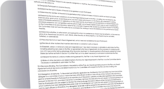 PAYPALHOLDINGS,INC.2015EQUITYINCENTIVEAWARDPLAN(MARKED) 12.2 Action by the Committee.UnlessotherwiseestablishedbytheBoardorinanycharteroftheCommittee,amajorityof theCommitteeshallconstituteaquorumandtheactsofamajorityofthememberspresentatanymeetingatwhicha quorumispresent,andactsapprovedinwritingbyamajorityoftheCommitteeinlieuofameeting,shallbedeemedthe actsoftheCommittee.EachmemberoftheCommitteeisentitledto,ingoodfaith,relyoractuponanyreportorother informationfurnishedto that memberbyanyofficerorotheremployeeoftheCompanyoranySubsidiary,theCompanys independentcertifiedpublicaccountants,oranyexecutivecompensationconsultantorotherprofessionalretainedbythe CompanytoassistintheadministrationofthePlan. 12.3 Authority of Committee.Subjectto any specificdesignationin the Plan, the Committeehas the exclusivepower, authority and discretion to: (a) DesignateParticipantsto receiveAwards; (b) DeterminethetypeortypesofAwardstobegrantedtoeachParticipant; (c) DeterminethenumberofAwardstobegrantedandthenumberofsharesofStocktowhichanAwardwillrelate; (d) DeterminethetermsandconditionsofanyAwardgrantedpursuanttothePlan,including,butnotlimitedto,the exerciseprice,grantprice,or purchaseprice,anyrestrictionsor limitationson the Award,any schedulefor vesting, lapseofforfeiturerestrictionsor restrictionson the exercisabilityof an Award, and accelerationsor waivers thereof, any provisionsrelatedto non-competitionandrecaptureofgainonanAward,basedineachcaseonsuchconsiderations astheCommitteeinitssolediscretiondetermines;provided,however,that,exceptasprovidedinArticle11ofthePlan, theCommitteeshallnothavetheauthoritytoacceleratethevestingorwaivetheforfeitureofanyperformance-based Awards; (e) Determinewhether,towhatextent,andpursuanttowhatcircumstancesanAwardmaybesettledin,ortheexercise price of an Awardmaybepaidin,cash,Stock,otherAwards,orotherproperty,oranAwardmaybecanceled, forfeited, or surrendered; (f) Prescribe the form of each Award Agreement,whichneednotbeidenticalforeachParticipant; (g) Decideall other matters that must be determinedin connectionwith an Award; (h) Establish, adopt, or revise any rules and regulations as it may deem necessaryor advisableto administerthe Plan, includingadoptingsub-planstothePlanorspecialtermsforAwardAgreements,forthepurposesofcomplyingwith non-U.S.lawsand/ortakingadvantageoftaxfavorabletreatmentforAwardsgrantedtoParticipantsoutsidetheUnited States(as further set forth in Section 4.2 of the Plan) as it may deem necessary or advisable to administer the Plan; (i) Interpret the terms of, and any matter arising pursuant to, the Plan or any Award Agreement; and (j) Make all other decisions and determinationsthat may be requiredpursuantto the Plan or as the Committeedeems necessaryoradvisabletoadministerthePlan. 12.4 DecisionsBinding.TheCommitteesinterpretationof thePlan,anyAwardsgrantedpursuanttothePlan,anyAward AgreementandalldecisionsanddeterminationsbytheCommitteewithrespecttothePlanarefinal,binding,and conclusiveonallparties. 12.5 Delegationof Authority. To the extent permittedby applicablelaw, the Board or the Committeemay from time to time delegatetoacommitteeofoneormoremembersoftheBoardoroneormoreofficersoftheCompanytheauthorityto grant or amendAwardstoParticipantsortoexerciseanyofthepower,authorityanddiscretiongrantedtotheCommittee pursuanttoSection12.3; provided,that(i) the CommitteeshallhavethesoleauthoritywithrespecttoAwardsgrantedtoor heldbyEmployeeswhoaresubjecttoSection16oftheExchangeActand(ii)officersoftheCompany(orDirectors)to whomauthorityhasbeendelegatedhereundershallnotbedelegatedsuchauthoritywithrespecttoAwardsgrantedtoor heldbysuchofficers(orDirectors).AnydelegationhereundershallbesubjecttotherestrictionsandlimitsthattheBoardor theCommitteespecifiesatthetimeofsuchdelegation,andtheBoardortheCommitteemayatanytimerescindthe authority so delegatedor appointa newdelegatee.Atall times,thedelegateeappointedunderthisSection12.5shallserve in such capacityat the pleasureof the Board or the Committee. ARTICLE13 EffectiveandExpirationDate 13.1 Effective Date. The effective date of this Plan is the date the Plan (as it may be amended and/or restated from time to time) is last approved by the Companysstockholders(the “EffectiveDate”). Each awardgrantedunderthePlanor subject to a written binding contract on or before November2, 2017 shall be subject to the Plan as in effect as of the date on which suchawardwasgranted,anditisintendedthateachsuchawardcontinuetobesubjecttoSection162(m)oftheCodeas in effect prior to the enactment of the Tax Cuts and Jobs Act. 134 •2023ProxyStatement