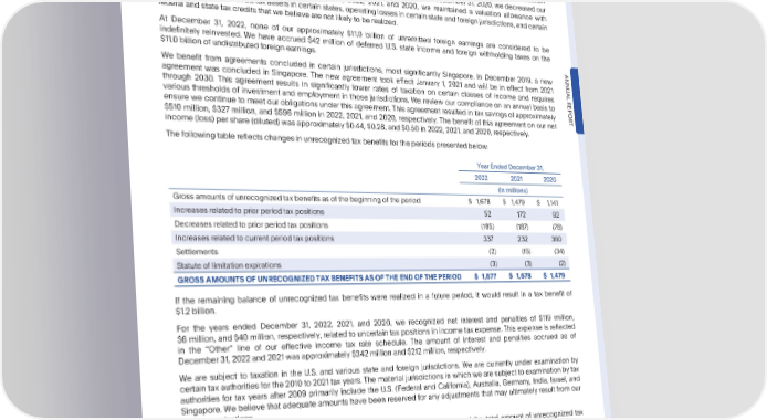 PARTIV Note16—IncomeTaxes PayPalHoldings,Inc. NotestoConsolidatedFinancialStatements—(Continued) realizability of our net operating losses. During the years ended December 31, 2022 and 2021, we increased our valuation allowance by $67 million and $108 million, respectively, and during the year ended December 31, 2020, we decreased our valuation allowance by $18 million. At December 31, 2022, 2021, and 2020, we maintained a valuation allowance with respectto our net deferred tax assets in certain states, operating losses in certain state and foreign jurisdictions, and certain federal and state tax credits that we believe are not likely to be realized. At December 31, 2022, none of our approximately $11.0 billion of unremitted foreign earnings are considered to be indefinitely reinvested. We have accrued $42 million of deferred U.S. state income and foreign withholding taxes on the $11.0 billion of undistributed foreign earnings. We benefit from agreements concluded in certain jurisdictions, most significantly Singapore. In December 2019, a new ANNU agreement was concluded in Singapore. The new agreement took effect January 1, 2021 and will be in effect from 2021 AL through 2030. This agreement results in significantly lower rates of taxation on certain classes of income and requires REPOR various thresholds of investment and employment in those jurisdictions. We review our compliance on an annual basis to ensure we continue to meet our obligations under this agreement. This agreement resulted in tax savings of approximately $510 million, $327 million, and $596 million in 2022, 2021, and 2020, respectively. The benefit of this agreement on our net T income(loss)pershare(diluted)wasapproximately$0.44,$0.28,and$0.50in2022,2021,and2020,respectively. Thefollowingtablereflectschangesinunrecognizedtaxbenefitsfortheperiodspresentedbelow: YearEndedDecember31, 2022 2021 2020 (In millions) Grossamountsofunrecognizedtaxbenefitsasofthebeginningoftheperiod $ 1,678 $ 1,479 $ 1,141 Increasesrelatedtopriorperiodtaxpositions 52 172 92 Decreasesrelatedtopriorperiodtaxpositions (185) (187) (78) Increasesrelatedtocurrentperiodtaxpositions 337 232 360 Settlements (2) (15) (34) Statute of limitation expirations (3) (3) (2) GROSSAMOUNTSOFUNRECOGNIZEDTAXBENEFITSASOFTHEENDOFTHEPERIOD $ 1,877 $ 1,678 $ 1,479 If the remaining balance of unrecognized tax benefits were realized in a future period, it would result in a tax benefit of $1.2 billion. For the years ended December 31, 2022, 2021, and 2020, we recognized net interest and penalties of $119 million, $6million, and $40 million, respectively, related to uncertain tax positions in income tax expense. This expense is reflected in the “Other” line of our effective income tax rate schedule. The amount of interest and penalties accrued as of December31,2022and2021wasapproximately$342millionand$212million,respectively. We are subject to taxation in the U.S. and various state and foreign jurisdictions. We are currently under examination by certain tax authorities for the 2010 to 2021 tax years. The material jurisdictions in which we are subject to examination by tax authorities for tax years after 2009 primarily include the U.S. (Federal and California), Australia, Germany, India, Israel, and Singapore. We believe that adequate amounts have been reserved for any adjustments that may ultimately result from our openexaminations. Although the timing of the resolution of these audits is uncertain, we do not expect the total amount of unrecognized tax benefits as of December 31, 2022 will materially change in the next 12 months. However, given the number of years remaining subject to examination and the number of matters being examined, we are unable to estimate the full range of possibleadjustmentstothebalanceofgrossunrecognizedtaxbenefits. In connection with our separation from eBay in 2015, we entered into various agreements that govern the relationship betweenthe parties going forward, including a tax matters agreement. Under the tax matters agreement, eBay is generally responsible for all additional taxes (and will be entitled to all related refunds of taxes) imposed on eBay and its subsidiaries (including subsidiaries that were transferred to PayPal pursuant to the separation) arising after the separation date with respect to the taxable periods (or portions thereof) ended on or prior to July 17, 2015, except for those taxes for which PayPalhasreflectedanunrecognizedtaxbenefitinitsfinancialstatementsontheseparationdate. •2022AnnualReport 115