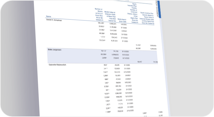COMPENSATIONTABLES 2022OutstandingEquityAwardsatFiscalYear-EndTable 2022OutstandingEquityAwardsatFiscalYear-EndTable ThefollowingtablesetsforthinformationregardingoutstandingequityawardsheldbyeachofourNEOsasof December31,2022.Mr.RaineyforfeitedalloutstandingequityawardsuponhisresignationfromtheCompany. StockAwards PRO XY Equity S IncentivePlan T A Awards: TEMENT Numberof Numberof Unearned Equity IncentivePlan Shares MarketValueof Shares,Unitsor Awards:Marketor or Units of SharesorUnits Other PayoutValueof StockThat of StockThat RightsThat UnearnedShares,Units HaveNot HaveNot StockAward HaveNot or Other RightsThat Name Vested(#) 1 ($) GrantDate Vested Vested(#) HaveNotVested($) 8 9,000,071 4/1/2018 DanielH.Schulman 126,370 2 2,128,908 3/1/2020 29,892 2 2,440,567 3/1/2021 34,268 3 6,295,563 3/1/2022 88,396 4 834,342 2/15/2022 11,715 5 9,261,021 3/1/2020 130,034 51,4046 3,660,993 7 6,295,563 88,396 3 741,756 9/15/2022 BlakeJorgensen 10,415 3 5,934,050 9/15/2022 83,320 4 218,645 9/15/2022 3,070 7 741,756 10,415 2 49,355 3/1/2020 GabrielleRabinovitch 693 1,4412 102,628 3/1/2020 2 544,619 3/15/2020 7,647 2 155,901 3/1/2021 2,189 2 47,433 3/1/2021 666 2 84,894 9/15/2021 1,192 3 655,794 3/1/2022 9,208 3 65,594 3/1/2022 921 18,3373 1,305,961 6/15/2022 3 984,260 10/15/2022 13,820 4 112,670 2/15/2022 1,582 5 71,719 3/1/2020 1,007 5 148,921 3/1/2020 2,091 5 789,830 3/15/2020 11,090 6 77,986 1,095 3346 23,787 6 127,413 1,789 7 655,794 9,208 7 65,594 921 18,3377 1,305,961 •2023ProxyStatement 75