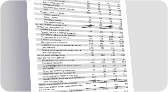 PayPal Holdings, Inc. Unaudited Condensed Consolidated Statements of Cash Flows Three Months Ended December 31, Year Ended December 31, 2022 2021 2022 2021 (In millions) (1) Cash flows from operating activities : Net income (loss) $ 921 $ 801 $ 2,419 $ 4,169 Adjustments to reconcile net income (loss) to net cash provided by operating activities: Transaction and credit losses 388 350 1,572 1,060 Depreciation and amortization 326 326 1,317 1,265 Stock-based compensation 294 318 1,261 1,376 Deferred income taxes (273) (307) (811) (482) Net (gains) losses on strategic investments 141 290 304 (46) Other (362) 8 205 100 Changes in assets and liabilities: Accounts receivable (74) (67) (163) (222) Accounts payable 20 19 (35) (31) Income taxes payable 264 55 373 73 Other assets and liabilities (54) (153) (629) (1,465) Net cash provided by operating activities 1,591 1,640 5,813 5,797 (1) Cash flows from investing activities : Purchases of property and equipment (158) (213) (706) (908) Proceeds from sales of property and equipment — 2 5 5 Purchases and originations of loans receivable (9,003) (5,179) (28,170) (13,420) Principal repayment of loans receivable 7,739 4,228 24,903 11,826 Purchases of investments (3,764) (9,211) (20,219) (40,116) Maturities and sales of investments 6,641 9,308 23,411 39,698 Acquisitions, net of cash and restricted cash acquired — (2,294) — (2,763) Funds receivable (1,728) 230 (2,813) 193 Collateral posted related to derivative instruments, net (16) 1 (19) 336 Other investing activities 157 — 187 — Net cash used in investing activities (132) (3,128) (3,421) (5,149) (1) Cash flows from financing activities : Proceeds from issuance of common stock 57 72 143 162 Purchases of treasury stock (1,010) (1,500) (4,199) (3,373) Tax withholdings related to net share settlements of (15) (58) (336) (1,036) equity awards Borrowings under financing arrangements 129 272 3,475 272 Repayments under financing arrangements — (361) (1,686) (361) Funds payable and amounts due to customers 2,157 997 1,498 3,572 Collateral received related to derivative instruments, net (443) 122 (6) 207 Other financing activities — — 1 — Net cash provided by (used in) financing activities 875 (456) (1,110) (557) Effect of exchange rate changes on cash, cash equivalents, 98 4 (155) (102) and restricted cash Net change in cash, cash equivalents, and restricted cash 2,432 (1,940) 1,127 (11) Cash, cash equivalents, and restricted cash at beginning of 16,724 19,969 18,029 18,040 period Cash, cash equivalents, and restricted cash at end of period $ 19,156 $ 18,029 $ 19,156 $ 18,029 Supplemental cash flow disclosures: Cash paid for interest $ 166 $ 110 $ 280 $ 231 Cash paid for income taxes, net $ 212 $ 38 $ 878 $ 474 (1) Beginning with the fourth quarter of 2022, we reclassified certain cash flows related to our collateral security arrangements for derivative instruments from cash flows from operating activities to cash flows from investing activities and cash flows from financing activities within the condensed consolidated statements of cash flows. See the section titled "Cash Flow Reclassification" for further details. Q4 & FY 2022 Results 12